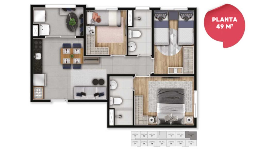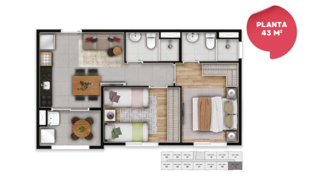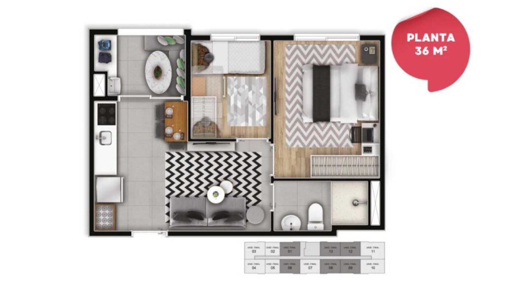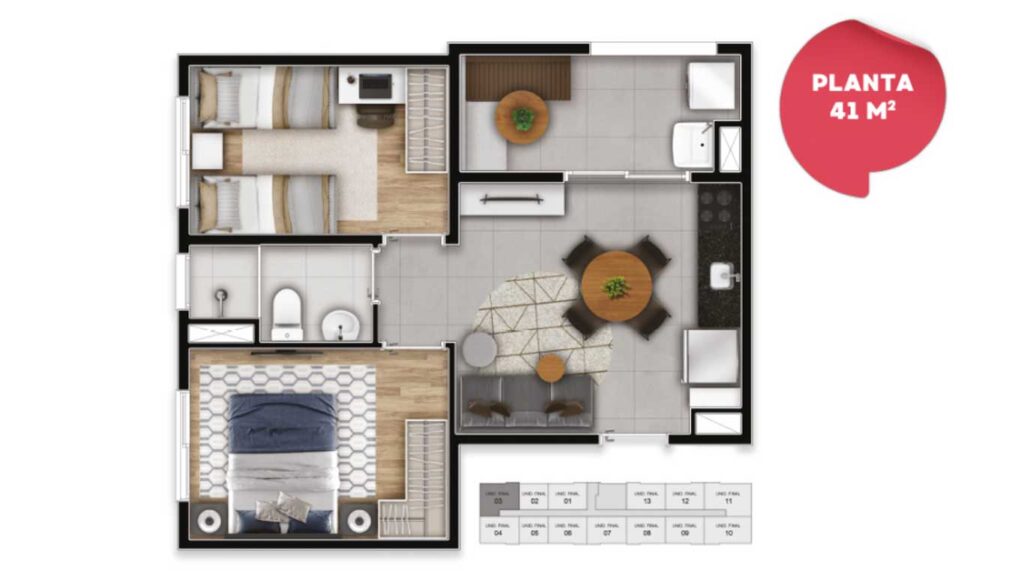 - 1 e 2 Dormitórios